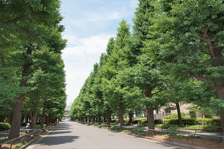 Walk up the gingko-lined avenue just across the way from Hiyoshi Station and you will find yourself in the heart of Keio's Hiyoshi Campus. This un-gated campus sprawls some 360,000 square meters as an open extension of the community where it is located. Seven faculties send their first- and second-year students here, and three of Keio's most specialized graduate schools call Hiyoshi home. With such diversity, student life here is exciting.