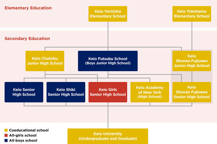 Keio University has a long tradition of comprehensive primary and secondary education. Students are encouraged to take initiative in all aspects of school life and are offered a multitude of opportunities to discover and realize their individual potential. While all of Keio's affiliated schools share the same overall educational philosophy, each possesses a unique personality and its own set of policies, which set the course for fostering both diversity and competence among the students.