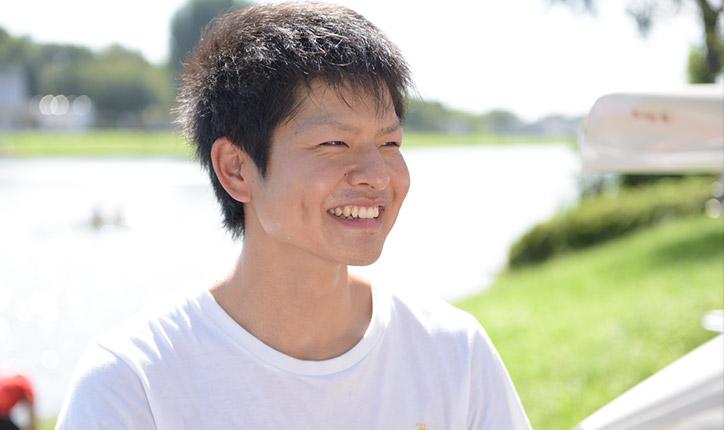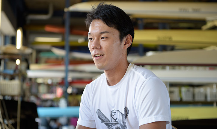 Atsushi Birukawa:My interest in rowing started at my high school in Akita Prefecture. There’s a river in the city where I went to school, and rowing was popular, and well, the rest is history. Initially, I’d thought rowing was merely about simple, repeated actions—not that complicated, you know. However, once I got seriously involved in the sport, I realized that there’s a lot more to it than meets the eye, and I came to recognize that there are many nuanced difficulties lurking within those seemingly straightforward actions. There are quite a lot of people in the club who’ve come from other sports, and because rowing is very different from most other sports, some members initially struggle to retain their balance when they get into the boat, and they consequently end up going for an unexpected swim. Extending the knees and generating knee power are important elements in rowing, so daily training is imperative to properly discipline the lower half of the body. Our team doesn’t emphasize weight training or other routines to build muscle. Instead, our policy is to strengthen our bodies through movements inherent in rowing, so we focus mainly on rowing practice, workouts, and running as supplementary regimens.