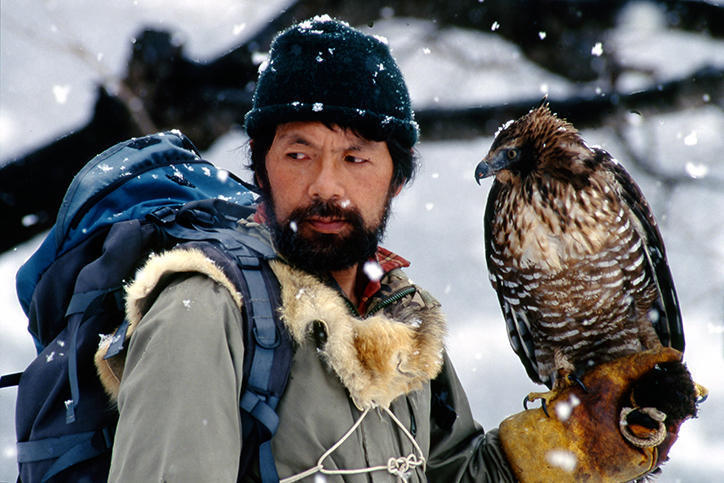 Hidetoshi Matsubara was born in 1950 in Aomori. After graduating from Keio University Faculty of Letters with a Major in Asian History in 1974, he studied under falconer Asaji Kutsuzawa of Mamorikawa in Yamagata Prefecture. Today, Matsubara is the only living falconer who hunts with mountain hawk-eagles. A proficient mountain climber, he has climbed most of Japan’s three-thousanders. In 1995 he was a member of the first group to ascend a remote peak located in the Kunlun Mountains in China and has completed solo climbs of four of Peru’s four-thousanders.