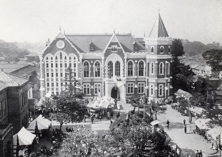 In 1906, plans to build a library were announced to commemorate Keio University’s 50th anniversary, at which time fund-raising for its construction began in earnest. Donations immediately exceeded the target of 300,000 yen (the equivalent of more than one billion yen today), but there was to be an unexpected turn of events. Some officials made the argument that the university should build a wooden structure to reduce construction costs and use the rest of the money to establish an institute of technology. However, then-president Eikichi Kamata was staunchly opposed to this idea, saying that the use of funds raised in the name of building the library for any other purpose would be tantamount to "losing the trust of the public." He also stipulated that the library must be constructed using fire-resistant materials. Thus, it was decided that the library would be built of brick, and in April 1912, the last year of the Meiji era, an elegant red-brick library appeared atop the hill of Mita with high-arched windows in the neo-Gothic tradition.