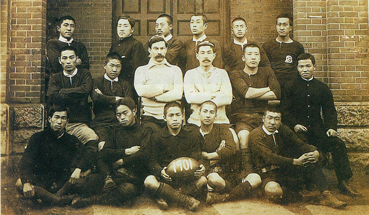 It all started in the fall of 1899, when Edward Bramwell Clarke, an English instructor at the Keio Department of Economics, hoping to make the most of the pleasant autumn weather, decided to teach his students how to play rugby. Enlisting the help of fellow Cambridge University alumni Ginnosuke Tanaka as coach and interpreter, the two set about teaching their students how to play the game.