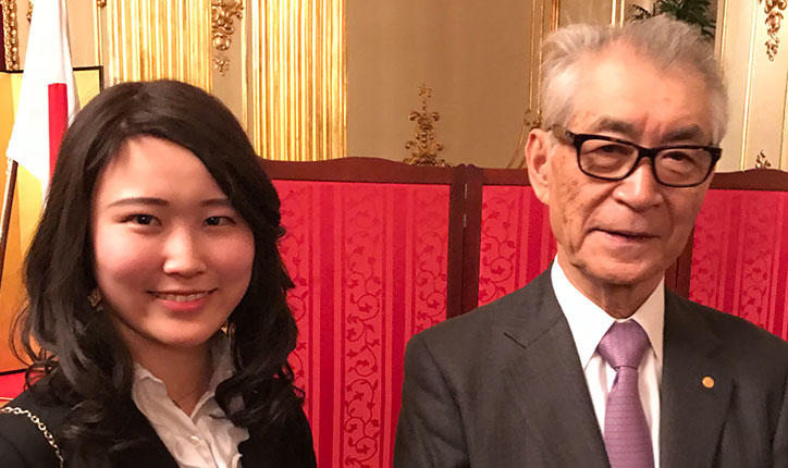 Maika Itsuno was one of two Japanese candidates sent to the Stockholm International Youth Science Seminar, which is held in conjunction with events related to the Nobel Prize. There she presented to high school students regarding her research on the use of iPS cells to discover the causes of dementia. She also discussed the latest issues in science with students from around the world. Maika attended the Nobel Prize awards ceremony and had a chance to meet with Kyoto University Distinguished Professor Tasuku Honjo, who won the Prize in Physiology or Medicine. "I was inspired by his passionate belief in the importance of basic medical research," she recalls. Maika says she was originally interested in clinical medicine, but after she began researching iPS cells in Prof. Hideyuki Okano's lab in her fourth year. After talking with Dr. Honjo, her interests are shifting toward basic research.