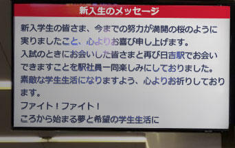 The year 2022 marked the centennial of the Tokyu Group as well as the 150th anniversary of the first publication of Keio founder Yukichi Fukuzawa's seminal work, An Encouragement of Learning. Celebrating this long-standing affiliation, Keio University honored the occasion with a commemorative collaboration poster proudly displayed within Hiyoshi Station and other locations.