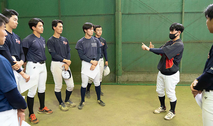 "Keio University baseball clubs place great importance on independence, with both coaches and players valuing the 'thinking' part of the game. What this means is that while the student coaches provide skills training and private consultation to the high school players, we believe that the ideal relationship is one in which, rather than giving the players the answers, we teach them how to think for themselves and make their own discoveries."