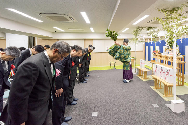 On Wednesday, March 1, Keio University’s Hiyoshi International Dormitory was completed, and a completion ceremony was held together with a tour of the facility. Representatives of companies in charge of the design, construction, and maintenance, including the building owner Nishimatsu Construction Co., Ltd., which oversaw the construction, and Nishimatsu Jisho Co., Ltd., the company in charge of the maintenance and operation of the dormitory, as well as President Seike and other members from Keio University attended the ceremony.