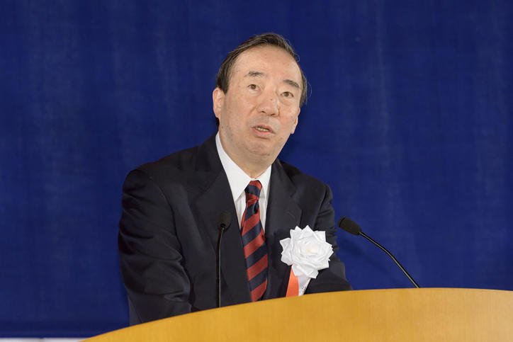 At the Hiyoshi Commemorative Hall, people associated with the Athletic Association, including active members, students from affiliated schools, staff and faculty members, over 1,300 alumni who were members of the Athletic Association (eldest was 97 years old), and managers and coaches of the 43 clubs of the Athletic Association gathered. Quoting former Keio University president Shinzo Koizumi—“practice makes the impossible possible”—in his speech, President Seike said the activities of the Athletic Association are the pride of Keio University. He gave words of encouragement to the members of the Athletic Association by saying that their efforts and hard work to be accomplished in both academics and sports are setting a good example and are an inspiration to all Keio University students.
