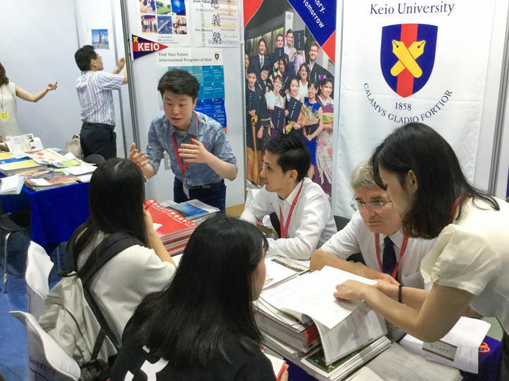 There was a long queue in front of the Keio University booth, and we were able to meet a lot of promising prospective students.