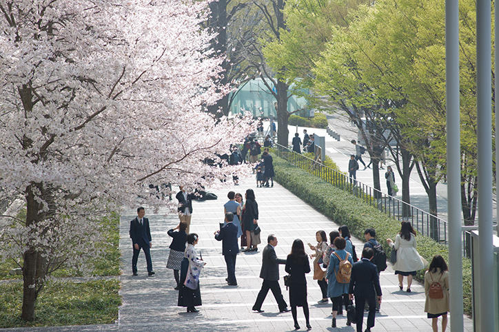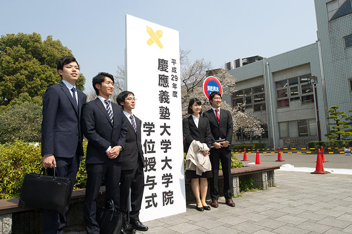 This year’s graduating class included many international students, and graduates from a broad range of age groups gathered with their families on Hiyoshi Campus. After the ceremony, graduates received their diplomas at the respective venues of their graduate schools, and many took the time to mark their imminent journeys by taking photos under the cherry blossom trees in full bloom.