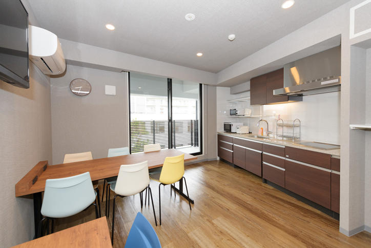 The Motosumiyoshi International Dormitory is a four-story mixed dormitory with a total of 156 single-occupancy rooms, 60 of which are intended for the use of international students and 96 of which are for Japanese students. At the canteen, morning and evening meals will be provided, which will greatly support the health of students. In addition, there are shared spaces for cooking and dining on every floor, as well as message boards, which are among the facilities which will encourage daily interactions between international students and their Japanese compatriots. This is a highly convivial living environment with excellent access from Motosumiyoshi train station, and convenient access to large supermarkets as well as convenience stores for shopping in the vicinity.
