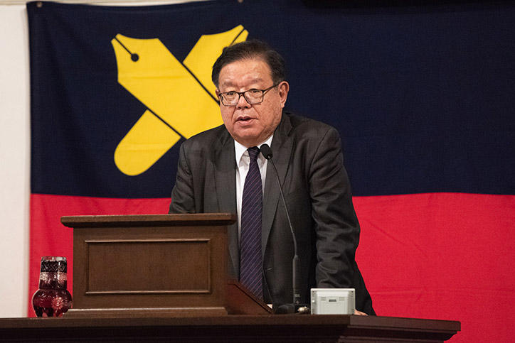 On Thursday, December 13, Keio University’s time-honored Mita Public Speaking Event was held at the Mita Public Speaking Hall (Mita Enzetsu-kan). At this 707th event, Professor Jun Murai of the Graduate School of Media and Governance and the Faculty of Environment and Information Studies gave a lecture entitled "Outline of a Theory of Internet Civilization," a play on the title of a book published by Keio University founder Yukichi Fukuzawa in 1875.