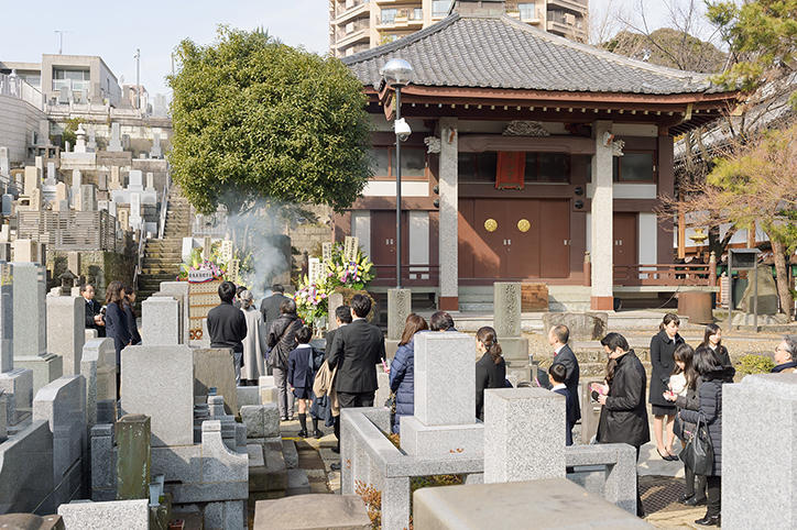 A Buddhist memorial service to mark the 118th anniversary of Yukichi Fukuzawa’s passing was held on Saturday, February 3 at Azabu-san Zenpuku-ji, a temple in Moto-Azabu, Minato City. Many people associated with Keio University prayed in front of Fukuzawa’s grave on this day dedicated to his memory and referred to as “Yukichiki,” including students from the affiliated schools to the university, alumni, and faculty and staff members. The long line of visitors making their way to the temple on a day with fine weather included students of Keio Yochisha Elementary School and Keio Yokohama Elementary School alongside their family members.