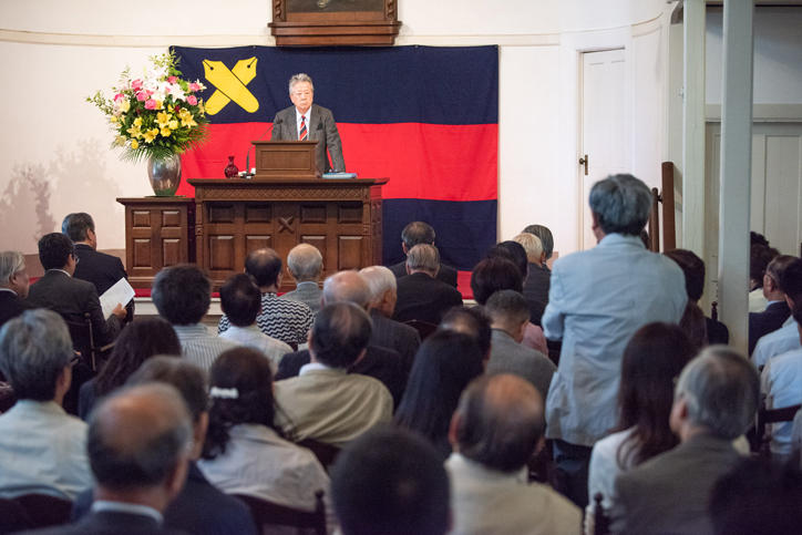 On Thursday, June 14, Keio University’s time-honored Mita Public Speaking Event was held at the Mita Public Speaking Hall (Mita Enzetsu-kan). At this 706th event, Takuo Takihana, former president of Yomiuri Shimbun, gave a lecture titled "Power of Authority and Journalism."