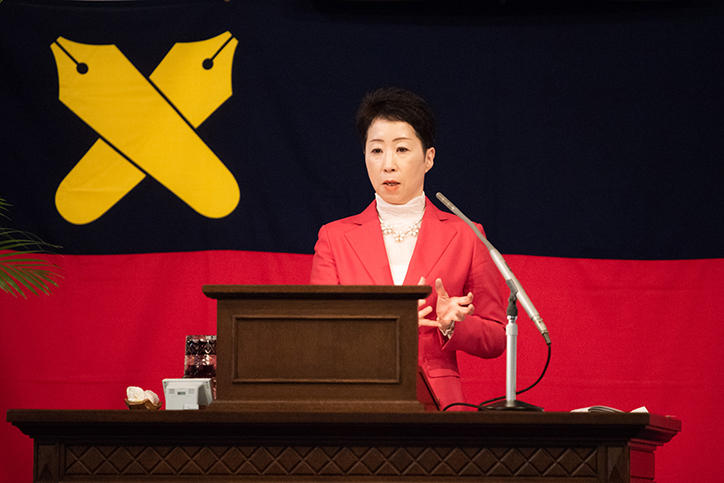 This year’s lecture, which took place at the Mita Public Speaking Hall (Mita Enzetsu-kan) on May 15 (Tues.), was titled "The advantages and disadvantages of monetary easing from the perspective of a former Member of the Policy Board of the Bank of Japan" and given by Professor Sayuri Shirai of the Faculty of Policy Management. Professor Shirai explained the current situation and the future of the Japanese economy in comparison with those of the United States and Germany, while considering issues such as the large gap that exists between the statistical data on prices and how households feel about the cost of living, and the impact the purchase of assets by the Bank of Japan is having on the financial market. Many questions were asked during the question and answer session, including those related to the monetary policies of the US, Europe, and China and the statistics compiled by the Bank of Japan.
