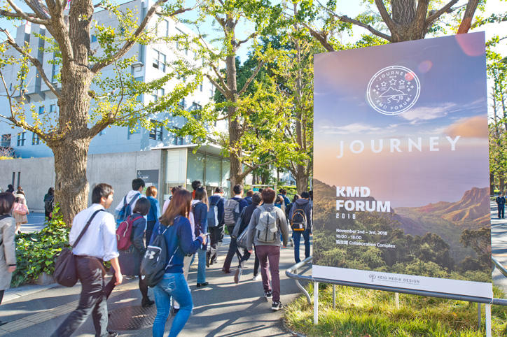 The KMD FORUM 2018, hosted by the Keio Graduate School of Media Design (KMD), was held at the Kyoseikan Collaboration Complex on Hiyoshi Campus over the two days of Friday, November 2 and Saturday, November 3. This year’s event was themed on the various journeys that KMD has undergone over the past ten years, to mark the 10th anniversary of its establishment. Developments at KMD to date and research outcomes of the "Real Projects" that form the core of its activities were presented, with over 1100 visitors attending over the two days.