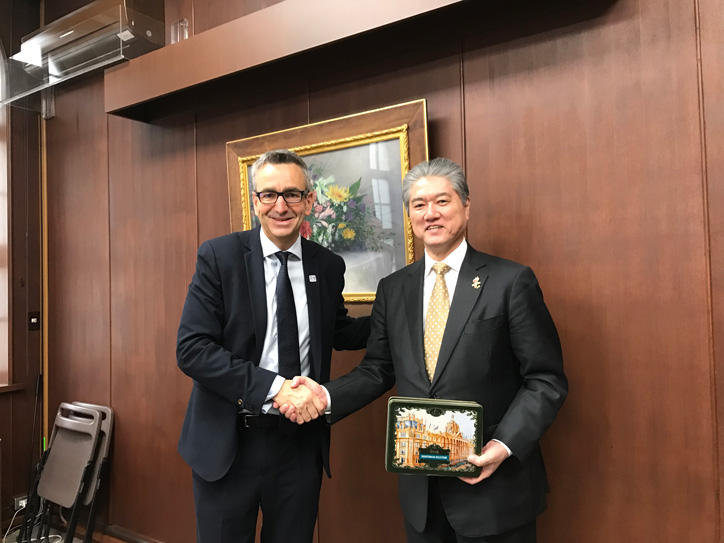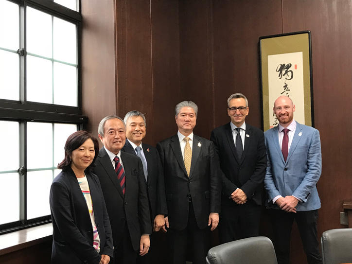 On Tuesday, October 23, Mr. Tim Hollingsworth, the current Chief Executive of BPA, paid a courtesy visit to Keio President Akira Haseyama to thank the university for all its support toward hosting ParalympicsGB’s preparation camp in 2020.