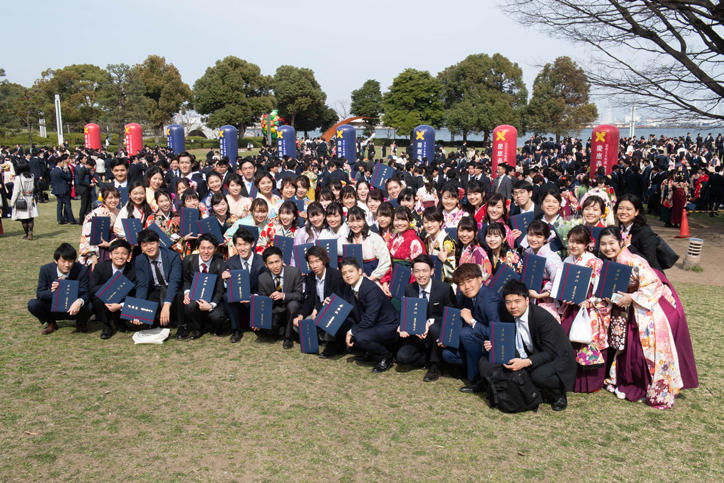 Under the warm spring sunshine and with the view of the ocean from Yokohama in the background, the graduates were seen taking commemorative photographs with their family and friends and fully enjoying the final moments of their university life.
