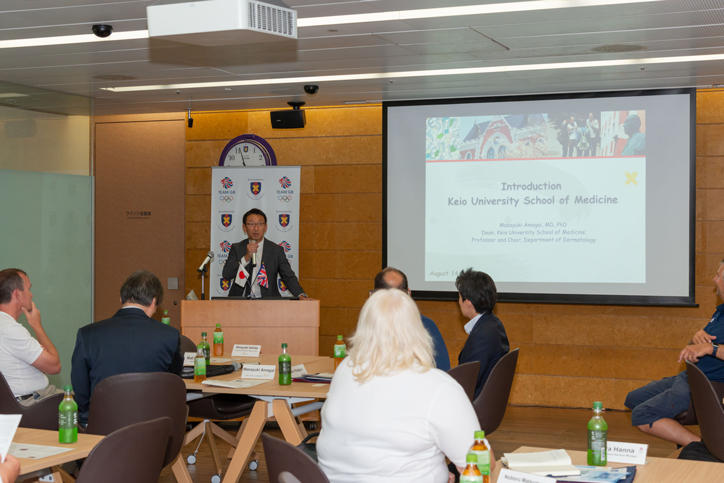 Following the tour, a joint seminar was held between the School of Medicine and the British delegation at the first floor lounge of the Center for Integrated Medical Research. Professor Hiroyuki Ishida from the Sports Medicine Research Center served as moderator at the seminar, with an overview of the School of Medicine and the hospital given by the Dean of the School of Medicine Masayuki Amagai. Greg Retter, who is responsible for the Performance Services Team for the British Olympics teams, then gave a lecture on the status of the British team’s preparations for the Tokyo Olympics. Subsequently, Dr. Niall Elliot, who holds the position of Medical Chief for the British teams and Dr. Jin Mizushima of Keio’s Department of Neuropsychiatry at Shinanomachi gave lectures which touched on subjects such as diagnostics and management relating to cerebral concussions from sports, and on clinical research. Following the seminar, the representatives from the BOA and the BPA were joined by faculty and students from the School of Medicine in lively discussions on the contents of these Olympic-aligned lectures.