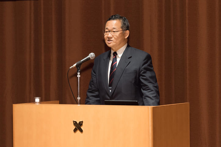 Following an address by Professor Eiji Okada, Dean of the Faculty of Science and Technology, Professor Takahira Yamaguchi of the Department of Administration Engineering at the Faculty of Science and Technology began by giving a lecture entitled "AI Research in the World and at Keio." During the lecture, Professor Yamaguchi introduced the history of AI and gave an overview of IBM’s Watson and Project Debater and a self-driving taxi of Waymo, an automotive company developing for Google in the United States, as examples of the implementation of global AI technologies.