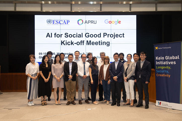 On Wednesday, June 5, a kick-off meeting for the "AI for Social Good ― a United Nations ESCAP-APRU-Google Collaborative Network and Project" was held at Keio University’s Mita Campus. The project brought together 8 scholars from all across Asia Pacific under the academic lead of Keio’s Vice-President Professor Jiro Kokuryo for the meeting, with the support of Google and UN ESCAP, and organization by the APRU-Association of Pacific Rim Universities.
