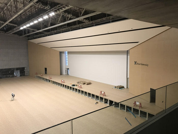 The Hiyoshi Commemorative Hall is mainly used for events such as university ceremonies and as a sports facility. The new building has four floors above ground and two below (the former had three floors above ground and one below) and has a seating capacity for around 10,000 people, a significant increase from the 6,500 of the former building. The size of the arena is also bigger, providing an improved environment for use as an indoor sports facility. The exterior design of the hall is in harmony with the surrounding school buildings, and it will become the new face of Hiyoshi Campus.