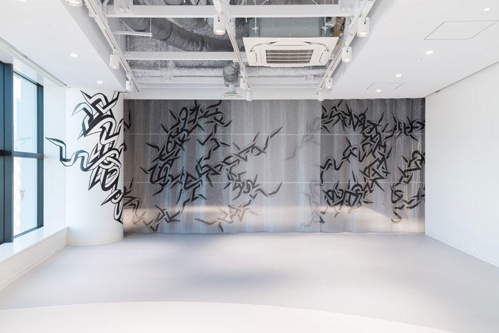 Mr. Oyama, who is himself a graduate of Keio University, has developed his artistic practice using his unique "Quick Turn Structure" motifs, with his works attracting attention in the field of modern art. He began to practice his art while still a high school student, and works he created at this time on a concrete block wall are preserved today at the Keio Shiki Boys Senior High School where he was a student.