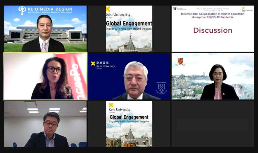 Keio Vice-President Shinnosuke Obi moderated the first "MEXT Top Global University Project Online Symposium: International Collaboration in Higher Education during the COVID-19 Pandemic" that was held on September 30, 2020. Approximately 430 people including faculties and university staff from Japan and around the world participated in the online symposium, indicating the high level of interest in the topic.