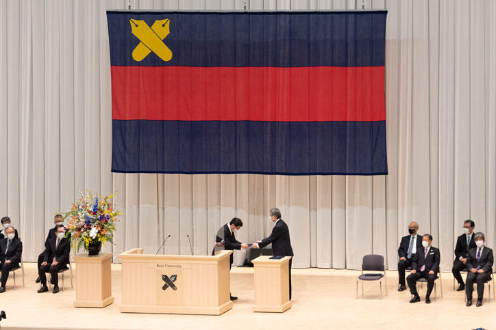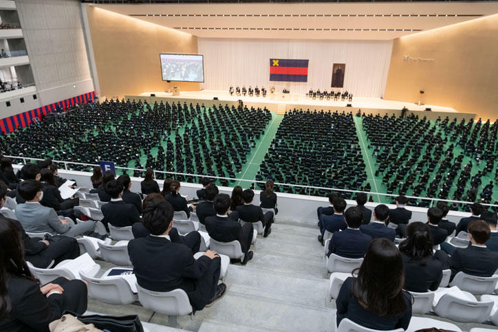 In order to give maximum consideration to preventing the spread of COVID-19 (coronavirus disease), the ceremony was divided into 2 sessions, with one held in the morning and the other in the afternoon, while participation was limited to the new students and certain related parties only. Videos of the ceremony were streamed online for all others interested in following the proceedings.