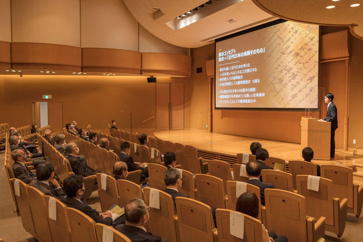 At the opening ceremony, speeches by Keio University President Kohei Itoh and Professor Takashi Hirano of the Faculty of Business and Commerce, who will serve as the Director of the Keio History Museum, were followed by an introductory lecture from the museum's Deputy Director and Associate Professor at the Fukuzawa Memorial Institute for Modern Japanese Studies Takeyuki Tokura. To conclude, Dean Juro Iwatani of the Faculty of Law (scheduled to assume the role of Keio University Vice-President from August of this year), offered his closing remarks.