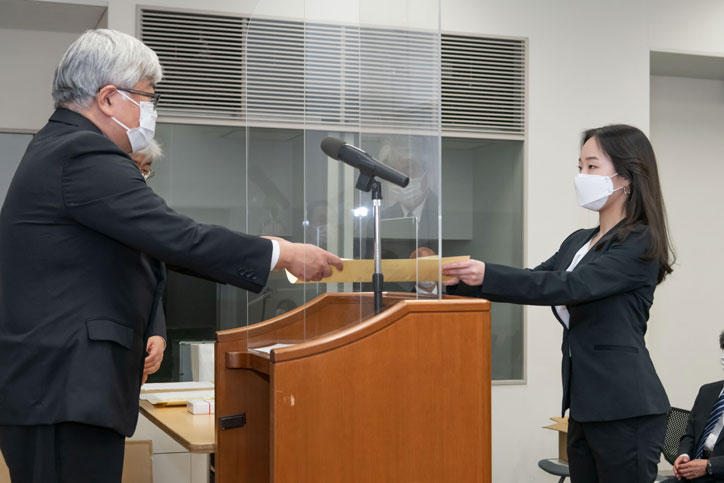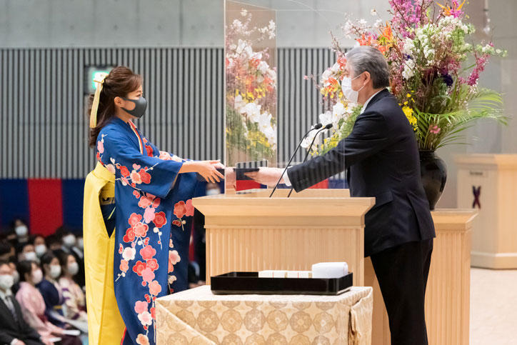 In order to give the utmost priority to the health and safety of graduates and prevent the spread of COVID-19 (coronavirus disease), event participation was limited to graduates and certain related parties and held in two parts, with a morning and afternoon session, in addition to videos of the proceedings being distributed on the web.