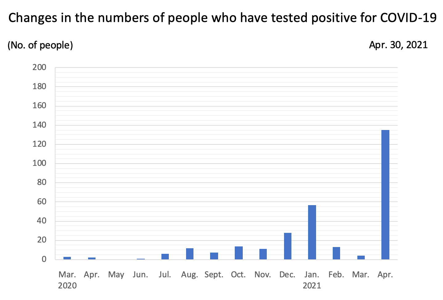 Number of people reported to have tested positive as of the end of April, 2021 (cumulative total)