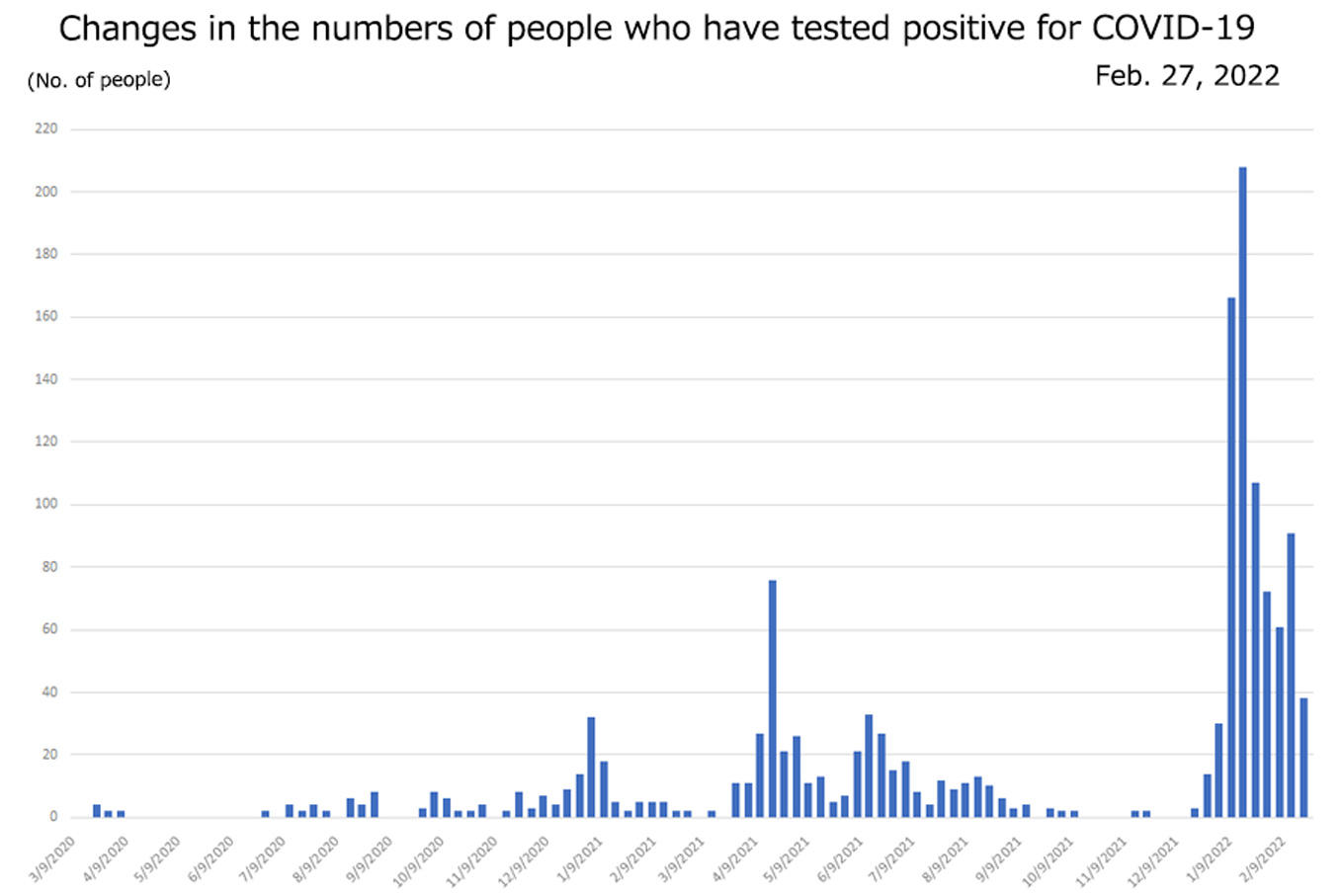 [Cumulative total] Number of people reported to have tested positive from March 2020 to February 27, 2022