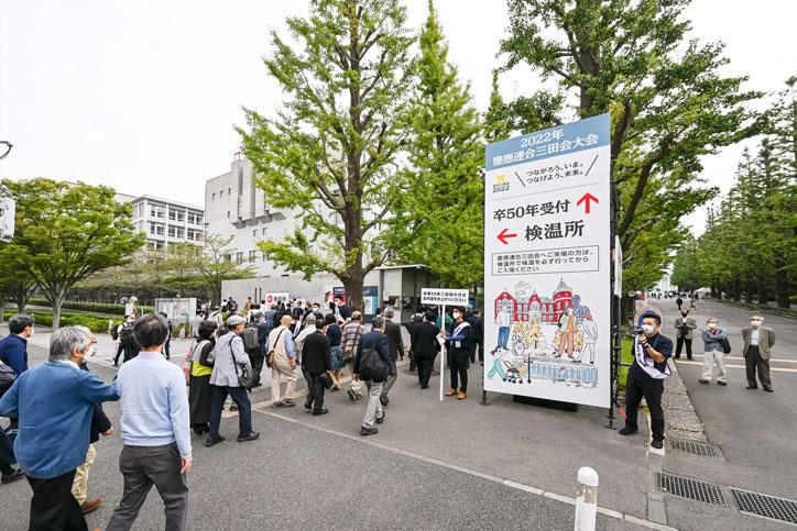 Due to the impacts of the COVID-19 pandemic, the Mita-Kai Homecoming was cancelled for the 2020 academic year, and held online for the 2021 academic year. This year's proceedings were held with infection control measures in place, and were the first to take place in-person in three years, bringing back the commemorative ceremony, booths, and other homecoming mainstays. Organizers also made use of the insights gleaned from last year’s homecoming to offer a hybrid format for the first time, incorporating online streaming to allow those who could not be physically present a way to participate as well.