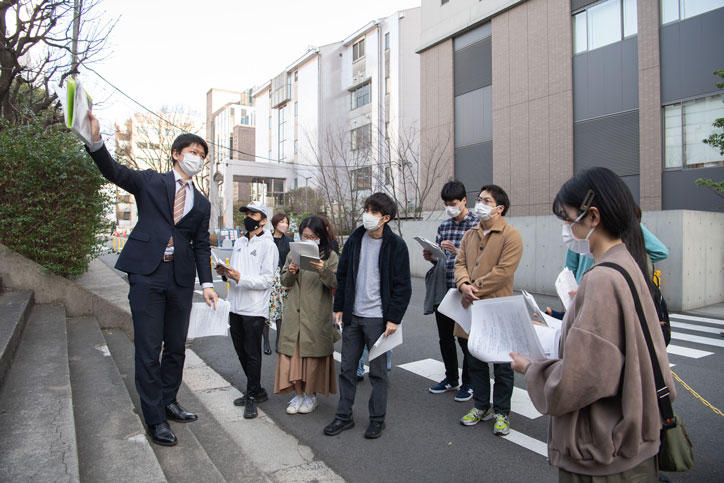 The tour took participants through various locations associated with Keio University and its founder Yukichi Fukuzawa, providing insight about their little-known histories and the characteristics that have been passed down from generation to generation. In the past, the program had been held in places throughout Japan such as Fukuzawa's birthplace in Osaka and Nakatsu City in Oita Prefecture, where he spent his childhood. Last year, the program stayed on Mita Campus to limit the spread of COVID-19. This year, tours were conducted first on Shinanomachi Campus, home of the Keio University Hospital. The tour was then held on Hiyoshi Campus, the base for many of Keio's student organizations and where a large number of first- and second-year students study.