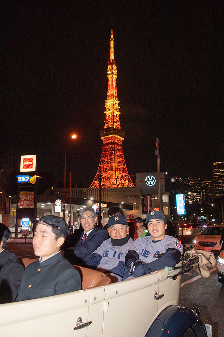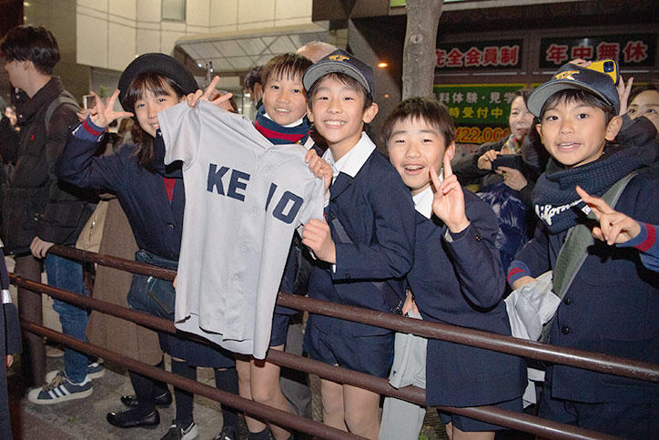 Approximately 2500 people, ranging from Keio students to alumni to local fans, followed the parade from Tokyo Tower to Mita Campus and a total of about 3400 people participated in or watched coverage of the other portions of the event to share in the festivities.