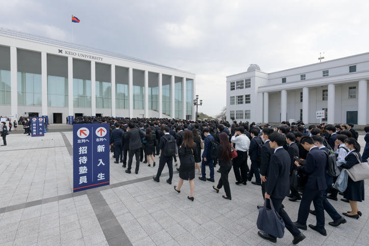 The morning rain had cleared up, and under a blue sky, Hiyoshi Campus was filled with hopeful smiles.