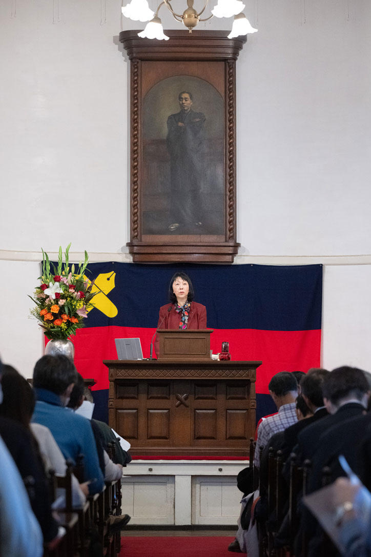 On Thursday, December 21, Keio University's time-honored Mita Public Speaking Event was held at the Mita Public Speaking Hall (Mita Enzetsu-kan). This marked the 712th speech given for this event series, with Prof. Akiko Ohta, professor emerita of Keio University, delivering a lecture on "The Iwakura Mission in the Victorian Era."