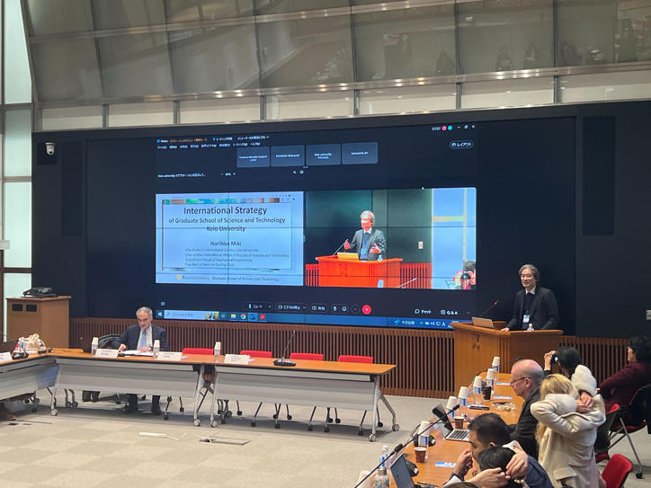 Between in-person and online attendance, there were approximately seventy participants at the seminar, representing government agencies and universities in Europe and the Asia-Pacific. Attendees included Haitze Siemers, minister and deputy head of the European Union Delegation to Japan, Jacques Kemp, head of sector within the European Commission and the European Education and Culture Executive Agency (EACEA), and other representatives from throughout the European Union, Australia, Indonesia, Taiwan, and other regions. Participants from Japan included Satoshi Nara, director of the Higher Education Bureau for the Ministry of Education, Culture, Sports, Science and Technology (MEXT), and university representatives from Tokyo University of Foreign Studies and Toyohashi University of Technology, both of which have been selected under MEXT's EU-Japan Inter-University Exchange Project (IUEP EU-Japan). Keio University was represented by Vice-President Yukihiro Ikeda and Professor Norihisa Miki from the Faculty of Science and Technology.