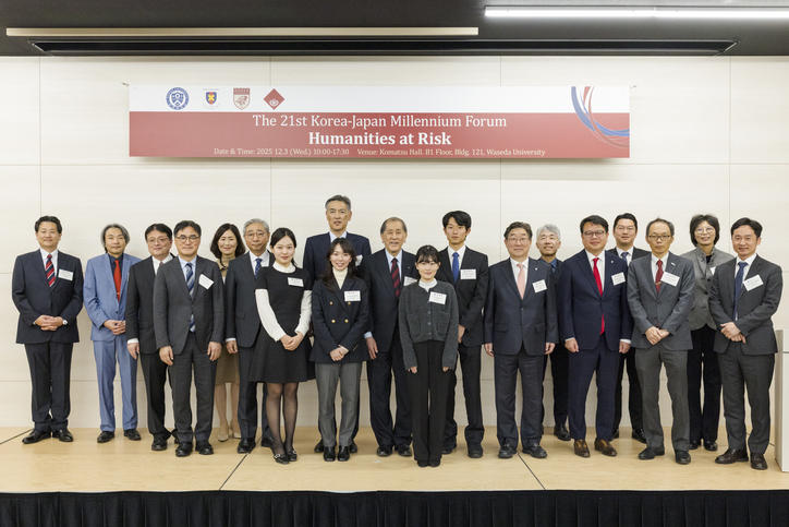 The 21st Korea-Japan Millennium Forum was held at Waseda University from December 2 to 3, 2025. Participating in the event from Keio University were President Kohei Itoh, Vice-President Motohiro Tsuchiya, along with Professor Satoko Tokunaga from the Faculty of Letters and Professor Akira Ishii from the Faculty of Economics as presenters, and a student representative.