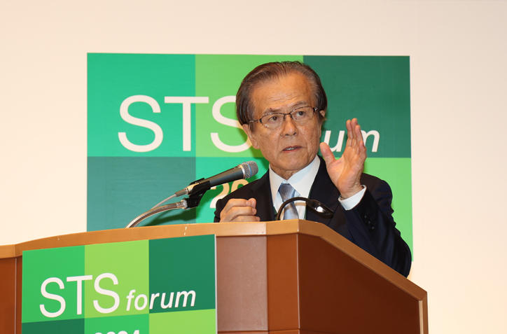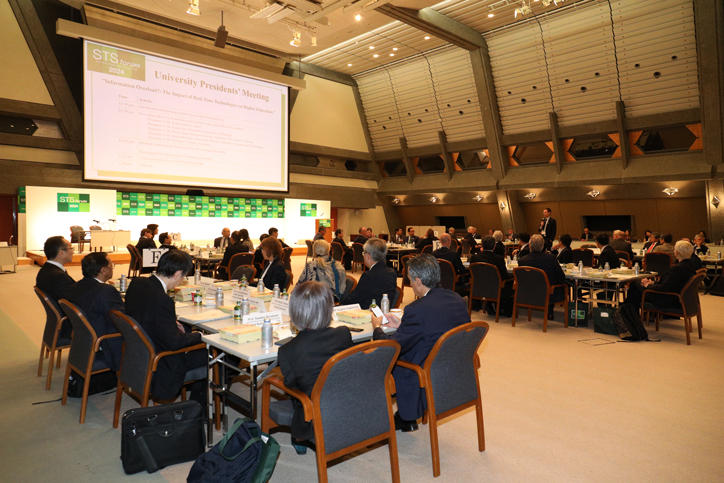 The University Presidents' Meeting provided a platform to discuss the theme, "Information Overload? The Impact of Real-Time Technologies on Higher Education." Keio University President Kohei Itoh (Japan) and the University of California President Michael Drake (United States) were co-chairs of the event as well as presenters. After they and two other speakers offered their thoughts, attendees broke into groups to discuss how they, as university presidents, might best handle and approach the accelerating use of AI and other new technologies at their schools. President Itoh also took to the stage as chair of the Koji Omi Memorial Plenary, the main session for the STS forum that honors its founder, Kōji Omi. President Itoh's speech was titled, Lights and Shadows of AI.
