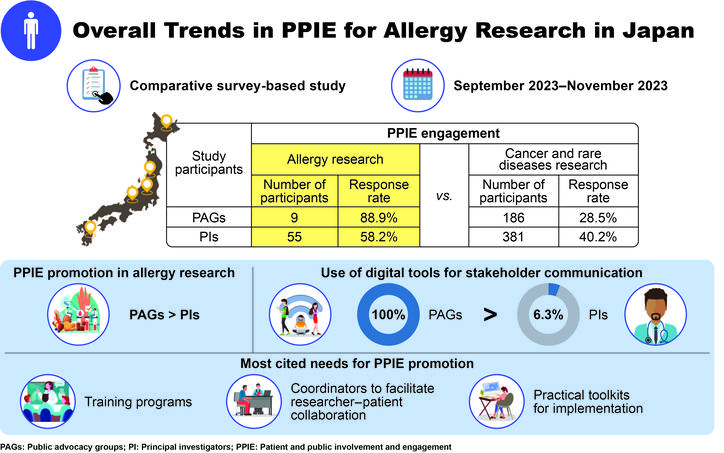 A team of researchers from Keio University School of Medicine, the Institute of Medical Science at the University of Tokyo, and the National Center for Child Health and Development has reported the first cross-disease, cross-stakeholder survey on PPIE in Japan. The study compared allergy research with cancer and rare diseases, fields where PPIE has already advanced.