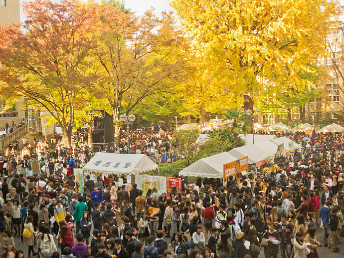 One of Japan's largest campus festivals, Mita Festival is punctuated with well-planned academic events and entertainment. It gives students—through their seminar classes, student associations, clubs, and otherwise—an opportunity to showcase their talents while food stalls and on-stage performances contribute to the wide-ranging appeal of the festival.