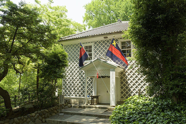 演説館開館125周年 明治8年5月1日、日本最初の演説会堂として建造された演説館。創建当初は現在の図書館(旧館)と塾監局との間に位置していたが、大正13年に現在地(三田キャンパス南西の稲荷山)へ移築。昭和22年には修復がほどこされた。また、平成7年より約1年半かけて解体修復が行われている。木造瓦葺、洋風、なまこ壁の建物は、昭和42年に国の重要文化財に指定されている。 開館125周年を迎えた現在も、この三田演説会や福澤先生ウェーランド経済書講述記念日の講演会などの義塾の公式行事が開かれている。