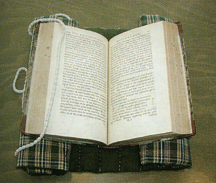 洋書は革と紙と糸と糊という異なる材質からできているので、経年すると材質がさまざまに変化する。空気が乾燥すると、革はかさかさになり、紙も乾燥するし、二カワ糊も弾力性がなくなる。無理に開くと、本の背に負担がかかるので背表紙が割れる。欧米では閲覧時に180度開かないようにするためにスポンジ製のブックレストを一般的に用いているが、シカゴのニューベリー図書館では日本の布団をもじった“Book Futon”「ブックフートン」というお手製のブックレストも使っている。それは80×30センチの帯状の布に綿を入れたもので、本のページの進み具合によって、丸める度合いを変えていくものである。半分読み終わった本を置く時は、ブックフートンの端を両側から丸め込むと、本がちょうどV字形になる。義塾図書館ではこのブックフートンを作製し閲覧の際に供している。