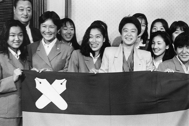 もっとも遠くまで行った塾旗といえば、1994(平成6)年・1998(平成10)年に塾員で日本初の女性宇宙飛行士である向井千秋氏(1977年医学部卒)がスペースシャトル搭乗時に持参したものだろう。帰還後には三田や信濃町で塾旗返還式が行われている。