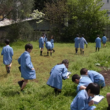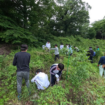 「普通部の森」の授業の様子また、普通部から塾高、大学の生物学教室へとつながる慶應の一貫教育校ならではの良さも感じます。今年の私の大学の授業には普通部の授業を受けていた人がいます。初回授業の日に4年も前の普通部の時に毎週提出してもらっていたノートを見せてくれました。こういうところにつながりが上手くできていると感じます。また卒業生にとって、普通部の授業で植えた木に大学生になって出会えることはとても有意義なことです。なかには森の管理をする「公認学生団体uniぼらんて」に加わって草刈に来てくれたりします。皆でこの日吉の森を育てているのです。