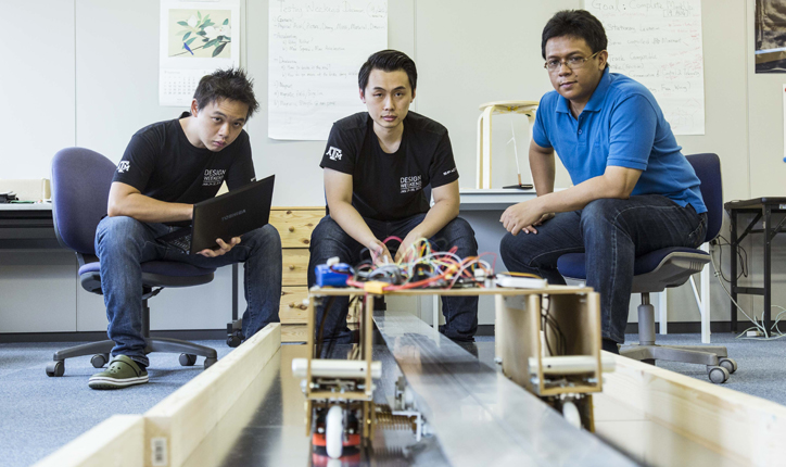 「出発時の推進力はリニアモーターを使用する予定です。途中の加速・減速時など、東京-新大阪間でいうと最低3ヶ所ほどの要所にだけリニアモーターによる機構を使えばよいので、リニア新幹線に比べて大幅なコストダウンが見込めます」(David)