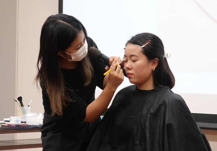 そこで早速、専門学校が開催している「一日メイク体験」に参加してみました。そこで初めて自分以外の人にメイクをする経験をして、「技術」として学ぶメイクに魅せられました。「人がキレイになる」ということに一種の芸術性を強く感じて、心が震えた瞬間でした。人をメイクで幸せにすることで、自分も幸せになれる仕事だと感じ、私にとってはこのメイクアップアーティストこそが「世のため、人のため、自分のため」の3つを満たせる仕事だと確信して、絶対にこの道に進むと心に決めました。