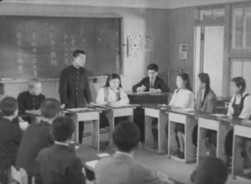1947年、戦後の新制度の中学として慶應義塾中等部が発足しました。慶應義塾の中学で初となる女子の生徒を迎え入れ、全国的にも男女共学の先駆けとなりました。フィルムでは、男子生徒と女子生徒が同じ教室で活発に意見をかわす様子が見られます。