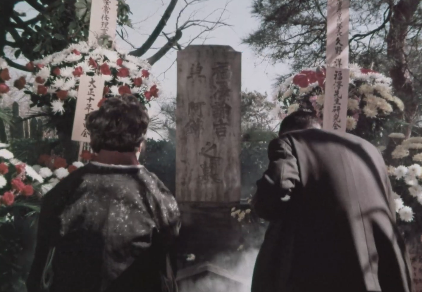 2月3日の福澤先生命日には、福澤が妻の錦さんとともに眠る墓所に多くの義塾関係者が訪れ手を合わせます。現在は港区麻布山善福寺にある墓所ですが、1977年までは品川区上大崎の常光寺にありました。このフィルムには常光寺に墓所があった頃の貴重な墓参の映像が残されています。上大崎の墓所は生前に福澤自らが気に入って選んだ場所でしたが、1977年5月に福澤家の菩提寺である善福寺に移葬されました。常光寺には現在、「福澤諭吉先生永眠之地」という碑が建てられています。